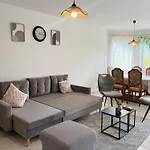 A fully furnished kitchen with a refrigerator, an oven, and kitchenware is provided in this apartment, along with coffee and tea makers. The nearest bus stop, Am Markt, is just 10 minutes' walk away. To enhance their stay at the property, guests have the option to engage in activities such as horseback riding, bowling, and mini golf.